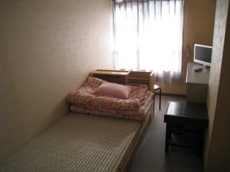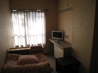 お部屋には、ベット、冷蔵庫、テレビの備え付けがあります。